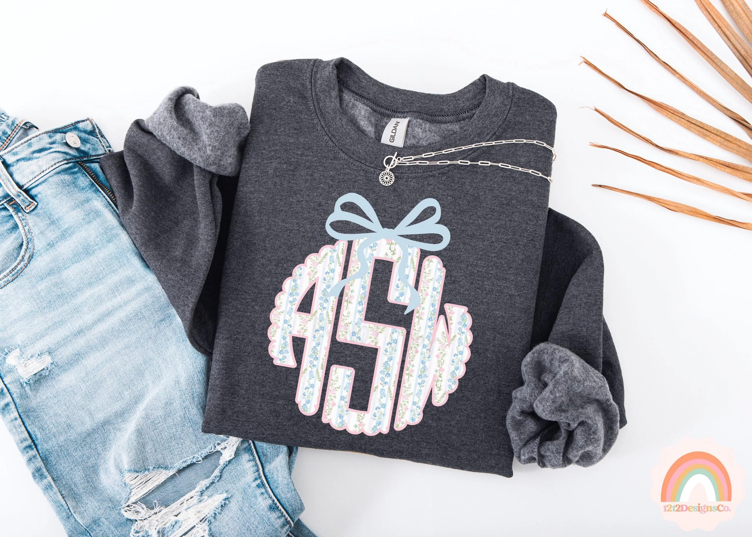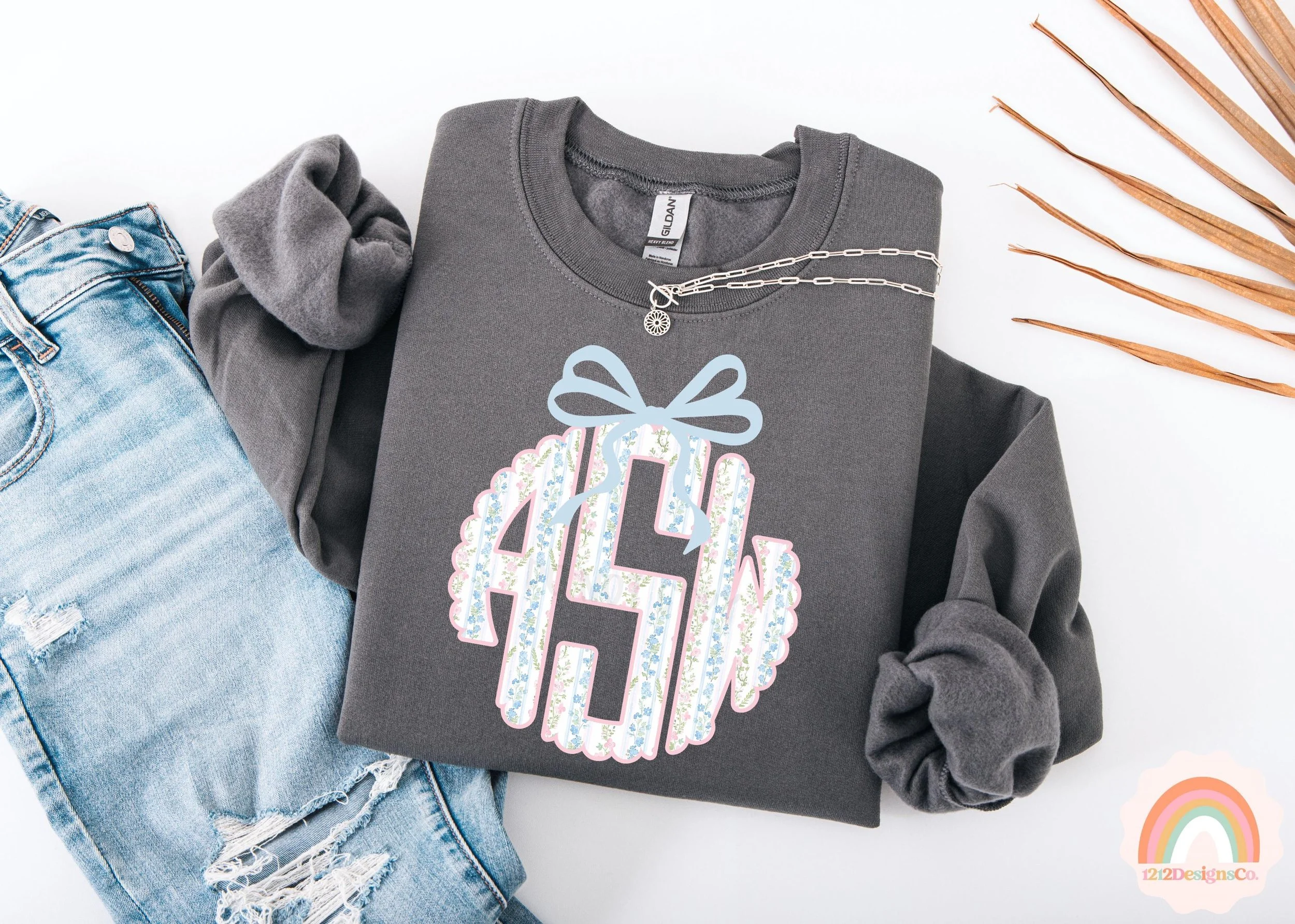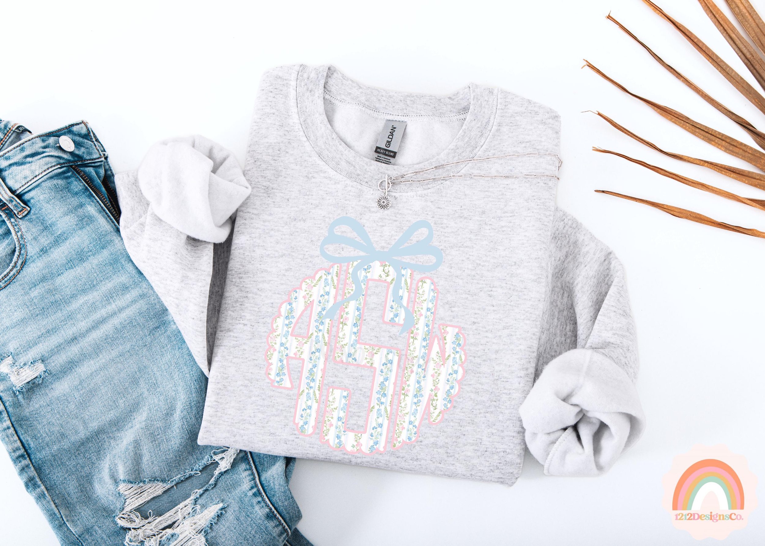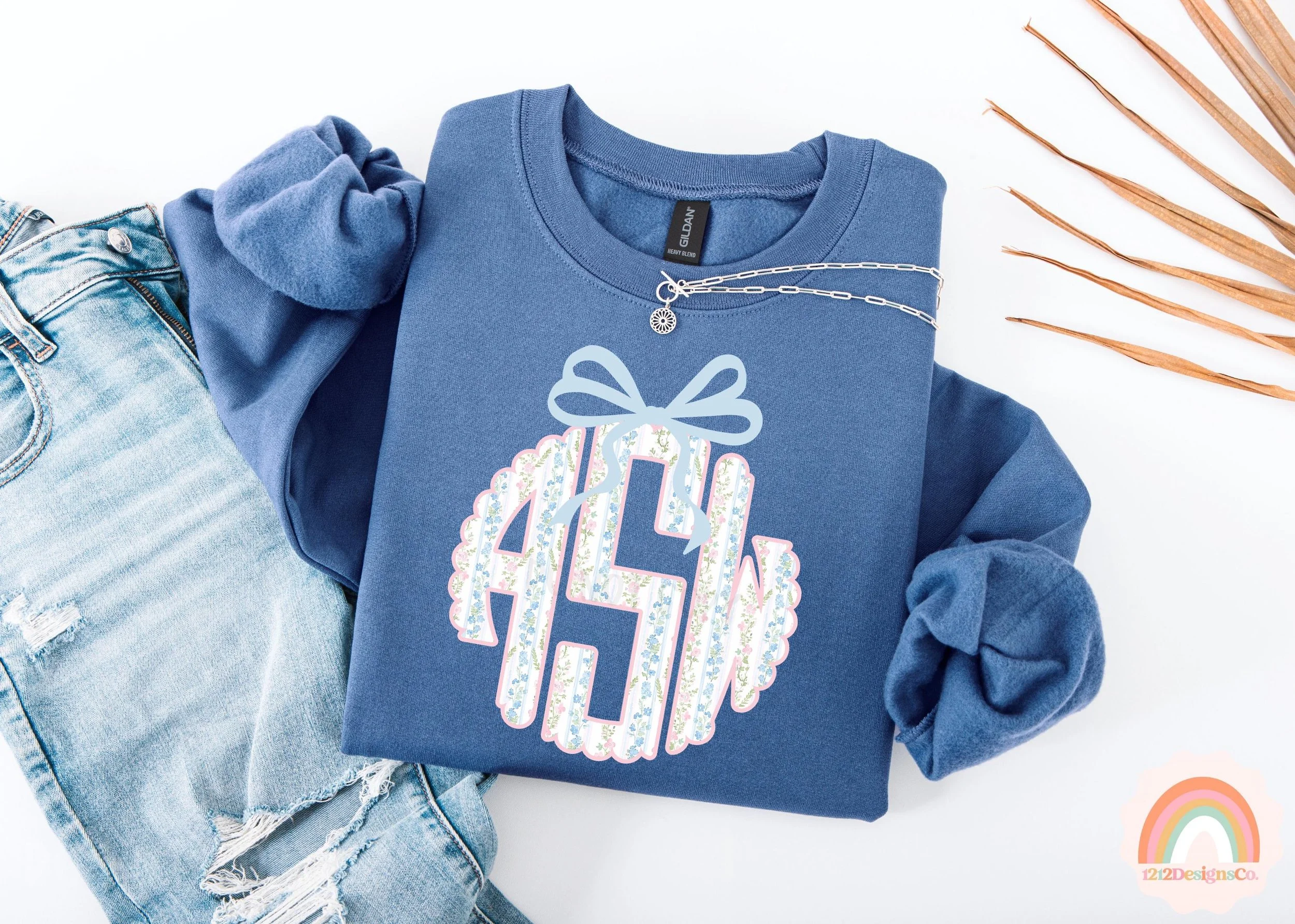 Shop › Custom Monogram Sweatshirt, Grandmillennial Monogram, Coquette Bow, Crewneck Sweatshirt, Gifts for Her, Personalized Gift, Preppy, Trendy