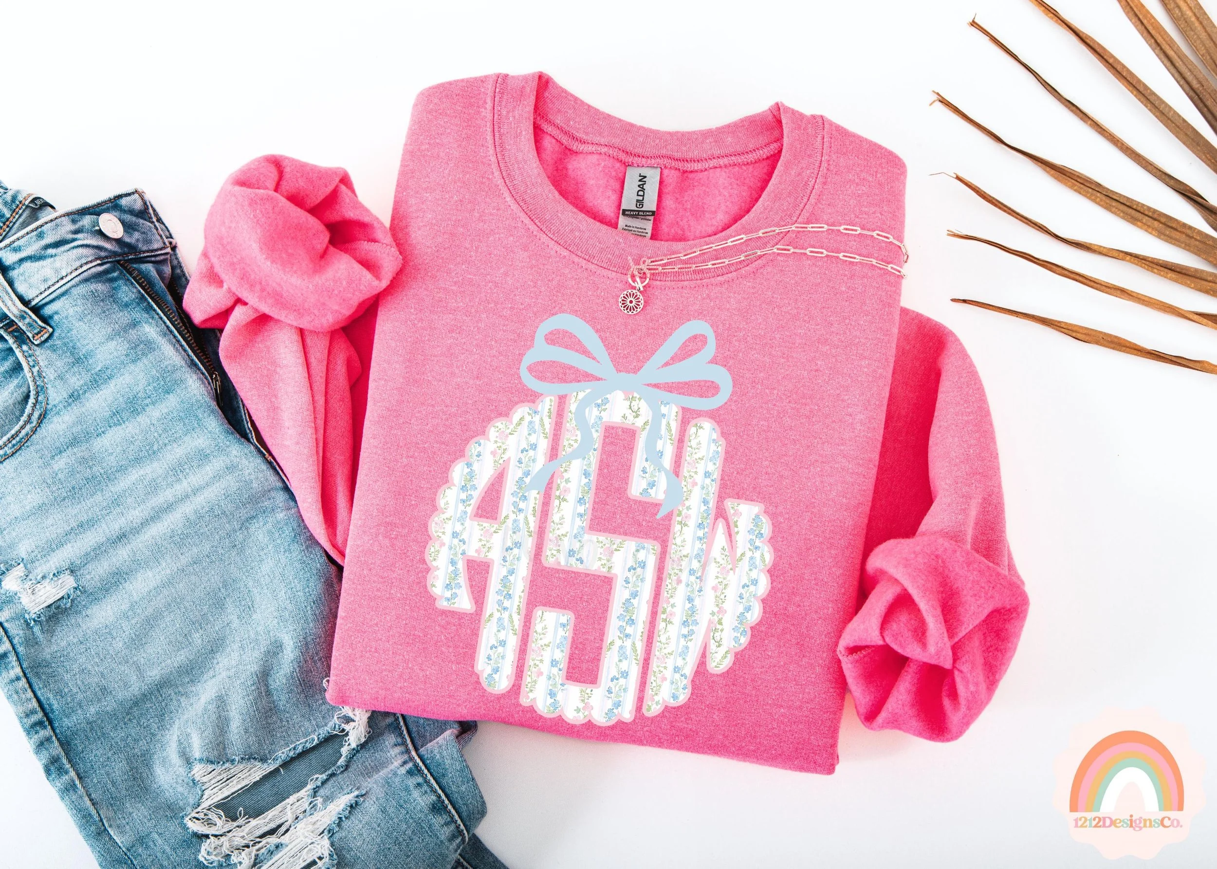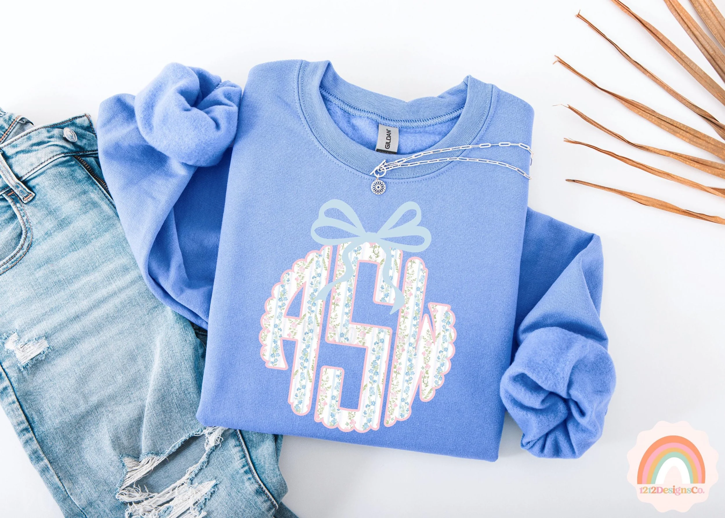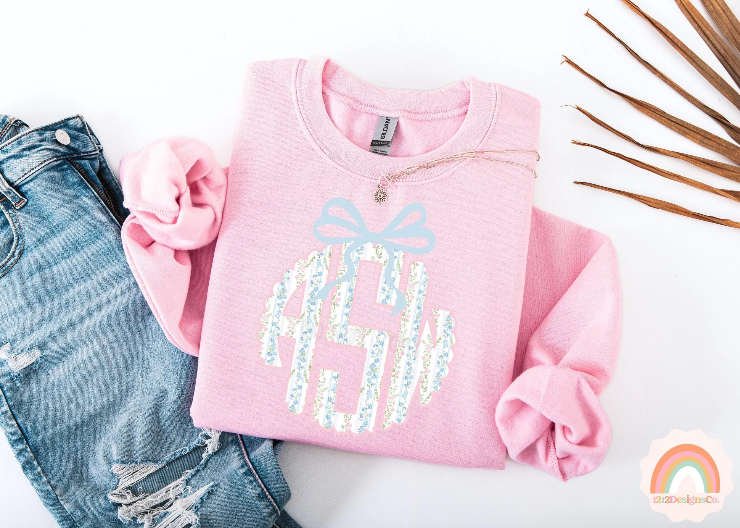 Custom Monogram Sweatshirt, Grandmillennial Monogram, Coquette Bow, Crewneck Sweatshirt, Gifts for Her, Personalized Gift, Preppy, Trendy